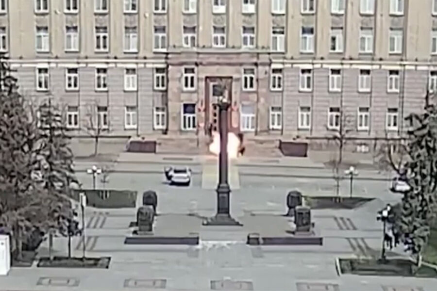 Момент удара украинского беспилотного летательного аппарата (БПЛА) по зданию правительства Белгородской области попал на видео. Запись в своем Telegram-канале опубликовал губернатор региона Вячеслав Гладков.