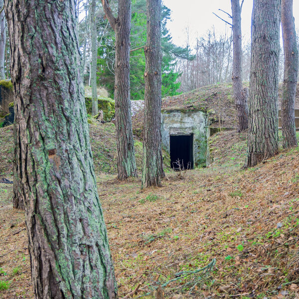 Перед отступлением в 1944 году немецкие войска взорвали бункеры. Сегодня на поверхности видны только огромные обломки железобетона.