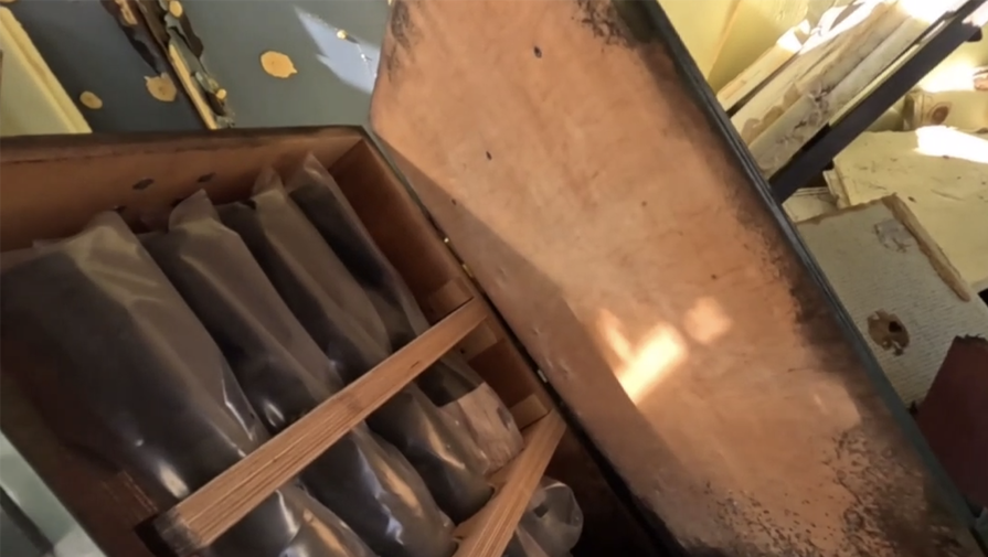 МВД показало кадры из населенного пункта, на которых можно увидеть подвал жилого дома, где располагался пункт запуска украинских дронов типа «Баба-Яга». В том числе в помещении лежали несколько авиабомб.