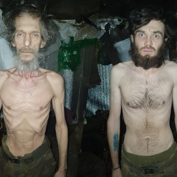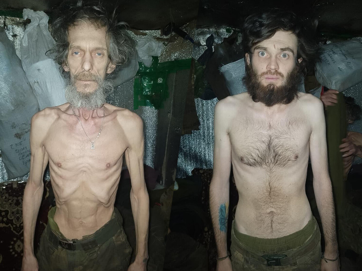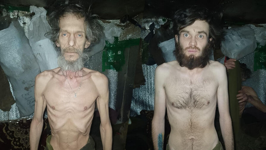 На снимках представлены несколько бойцов украинской армии. Видно, что на их теле не осталось жировой ткани, сильно выпирают ребра и ключицы, а живот продавлен вовнутрь. На руках отчетливо видны мышцы из-за сильной худобы.