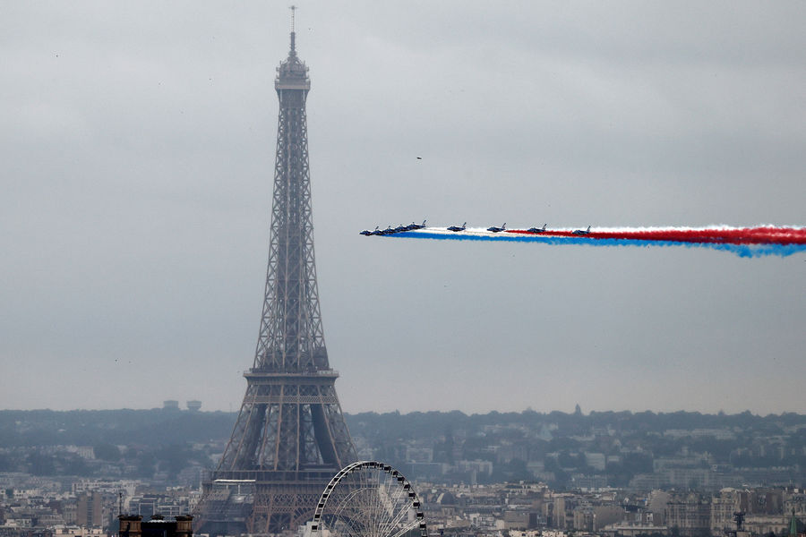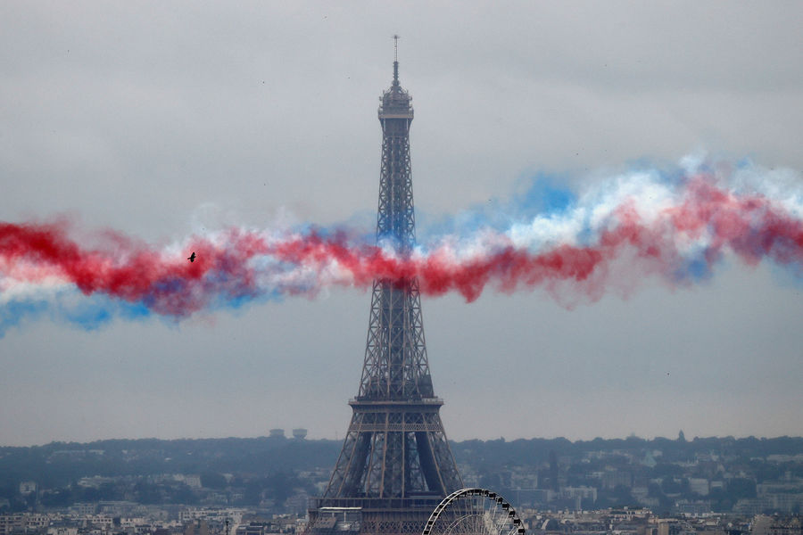 Франция празднует День взятия Бастилии — свой национальный праздник. По традиции в честь знаменательной даты на Елисейских полях проходит военный парад, в этом году в нем принимают участие более 4 тыс. военных, десятки самолетов, вертолеты и гусеничная техника. Парад проходит под лозунгом «Завоевать будущее», как пояснили в Париже, речь идет о борьбе Франции с пандемией коронавируса COVID-19 и экстремистскими группировками.