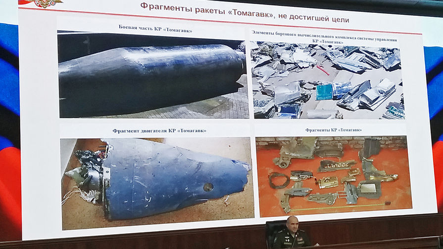 «Две из них, в том числе крылатая ракета «Томагавк» и авиационная высокоточная ракета, доставлены в Москву», — сказал Рудской. Ракеты и их фрагменты были продемонстрированы Министерством обороны во время брифинга.