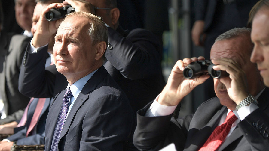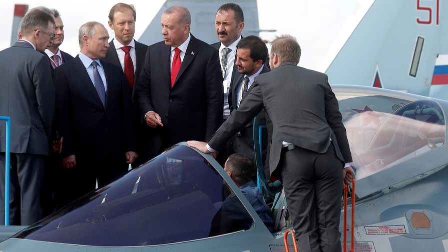 Президент Турции Реджеп Тайип Эрдоган прилетел в Россию и сразу отправился в Подмосковье — открывать вместе с Владимиром Путиным авиасалон МАКС. Президенты осмотрели новейший российский истребитель Су-57 и пассажирский лайнер МС-21.