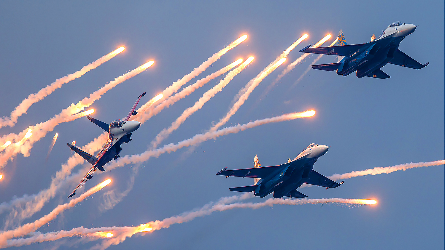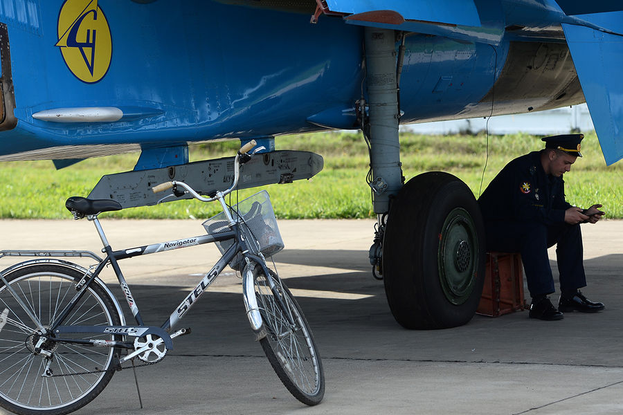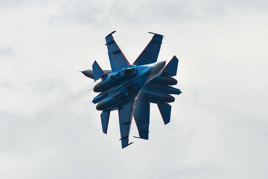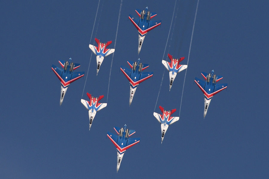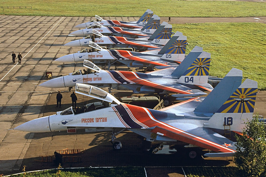 Это единственная в мире группа, которая выполняет фигуры одиночного и группового пилотажа на тяжелых истребителях. Авиационную группу высшего пилотажа начали создавать еще в мае 1989 года.