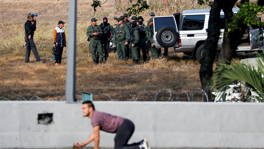 Во время столкновений между венесуэльскими силовиками и протестующими около авиабазы в Каракасе, 30 апреля 2019 года Во время столкновений между венесуэльскими силовиками и протестующими около авиабазы в Каракасе, 30 апреля 2019 года Лидер оппозиции Венесуэлы и самопровозглашенный президент Хуан Гуайдо со сторонниками во время демонстрации в Каракасе, 30 апреля 2019 года Бронеавтомобили Нацгвардии Венесуэлы во время столкновений с протестующими около авиабазы в Каракасе, 30 апреля 2019 года Военнослужащий, поддержавший лидера оппозиции Венесуэлы Хуана Гуайдо, во время демонстрации около авиабазы в Каракасе, 30 апреля 2019 года Бронеавтомобиль Нацгвардии Венесуэлы во время столкновений с протестующими около авиабазы в Каракасе, 30 апреля 2019 года Военнослужащие, поддержавшие лидера оппозиции Венесуэлы Хуана Гуайдо, во время демонстрации около авиабазы в Каракасе, 30 апреля 2019 года Сторонники венесуэльской оппозиции во время демонстрации в Каракасе, 30 апреля 2019 года Во время столкновений между венесуэльскими силовиками и протестующими около авиабазы в Каракасе, 30 апреля 2019 года Военнослужащие на мосту около авиабазы в Каракасе, 30 апреля 2019 года Подконтрольные официальным властям военнослужащие на территории авиабазы в Каракасе, 30 апреля 2019 года Военнослужащие около авиабазы в Каракасе, 30 апреля 2019 года Бронеавтомобиль около авиабазы в Каракасе, 30 апреля 2019 года Вооннослужащий около авиабазы в Каракасе, 30 апреля 2019 года Военнослужащие около авиабазы в Каракасе, 30 апреля 2019 года Протестующие около авиабазы в Каракасе, 30 апреля 2019 года Подконтрольные официальным властям Венесуэлы военнослужащие на территории авиабазы в Каракасе, 30 апреля 2019 года Лидер оппозиции Венесуэлы и самопровозглашенный президент Хуан Гуайдо с военнослужащими около авиабазы в Каракасе, 30 апреля 2019 года Беспорядки в Каракасе, 30 апреля 2019 года (кадр из видео) Военнослужащие, поддержавшие лидера оппозиции Венесуэлы Хуана Гуайдо, во время демонстрации около авиабазы в Каракасе, 30 апреля 2019 года