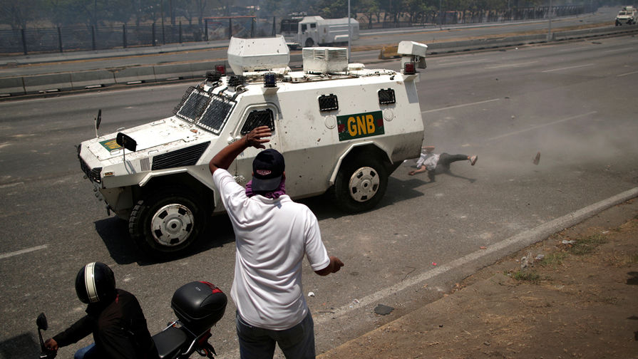 В Каракасе бронеавтомобили въехали в группу протестующих, на кадрах с места происшествия видны пострадавшие. С раннего утра в столице Венесуэлы происходит очередной всплеск столкновений между силовиками и сторонниками лидера оппозиции Хуана Гуайдо. Ранее самопровозглашенный президент сообщил, что ряд высших военных чинов страны выразили ему поддержку и присоединились к протесту против правительства Николаса Мадуро.