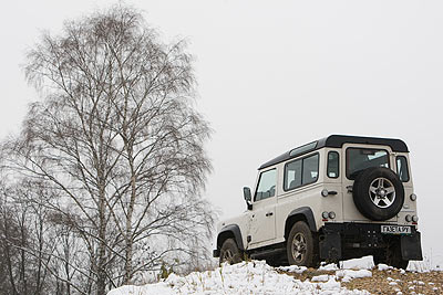 В лесу он ведет себя, как командир партизанского отряда. Ловко прокладывает себе тропу, без тени сомнений ныряет в болото, путает след и оставляет за собой ловушки в виде глубокой колеи, по которой пройти сможет только другой Defender. Наш защитник сплоховал лишь однажды, забуксовав в жидкой глине на поле, но это была не его вина, а шоссейной резины. Мы взяли его в лес из городского тест-парка с асфальтовой резиной, но в полной экипировке с ним никогда такого не произошло бы. В этом мы убедились, когда другой «дэф» вытягивал нас из грязевого капкана.