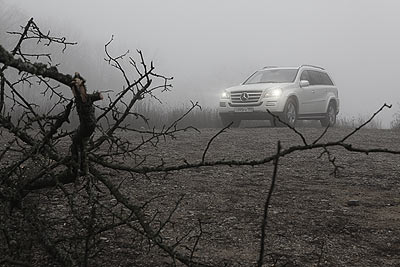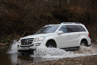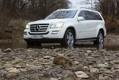 Горная трасса для рестайлингового GL проложена частично по раллийной трассе кубка России, частично — по дороге, проложенной для обслуживания газопровода «Голубой поток». В горах сыро и влажно, а потому густой пеленой лежит туман. Видимость не больше 100 метров. Щебенка, которой усыпан наш путь, мокрая, словно покрылась слизью - а потому очень скользкая, да еще и сыпучая. Предупредив нас о сложных условиях, инструктор становится первой машиной и валит под 80 км\ч. Отпустив машину на безопасную дистанцию, я теряю ее в тумане из виду. Но и приближаться мне страшновато, ведь за каждым валуном и горным изгибом может быть резкий спуск и подъем, в который я не впишусь на трехтонном пятиметровом внедорожнике. GL 500 помогает мне. Колеса, слегка проскользнув, тут же вцепляются в дорогу, перекидывая крутящий момент на устойчивое колесо. Высокий автомобиль почти не кренится, тормоза схватывают отменно, так что даже при крутых и резких спусках я чувствую, что владею ситуацией.