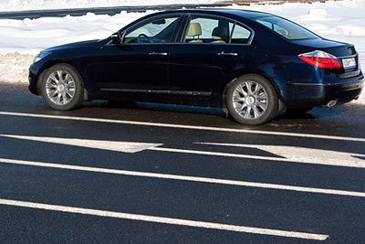 Ходовые повадки большого Hyundai также подчеркнуто «пассажирские», однако капитаном теплохода за рулем этой машины себя не ощущаешь – следует заданной траектории она надежно.