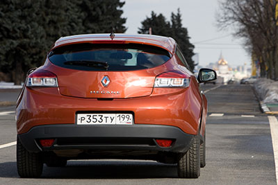 Объем багажного отделения в нем составляет от 344 до 1024 л (при сложенных задних сиденьях), но задняя створка в Megane Coupe как длинный и узкий язык - у пятидверки (дебют которой у нас намечен на ближайшие недели) проем пошире, а задние фонари выполнены разрезными и объем несколько больше – от 405 до 1162 л.