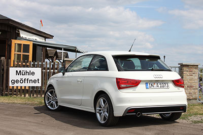 Баранка с толстым ободом рассчитана скорее на мужские руки, радует и удобный шарик рукоятки «механики». И передние, и задние кресла плотно охватывают с боков, но всё же галерка – не для крупных пассажиров. Даже при не самом высоком росте затылок упирается в мощную поперечную балку, а подлокотник явно рассчитан на детскую ручку. При этом хороша шумоизоляция – даже на немецком автобане, при высокой скорости в салон не рвется свист ветра, а на берлинских улицах и брусчатых мостовых Потсдама она, наряду с подвеской, уберегает пассажиров от излишней вибрации. Спереди на A1 стоят стойки McPherson с треугольными нижними рычагами, сзади – полузависимая подвеска со скручивающейся балкой и разнесенными опорами пружин и амортизаторов.