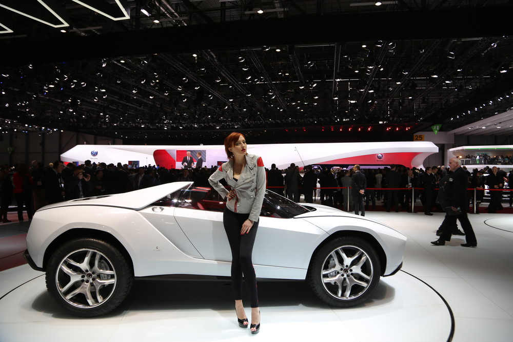 Пока мы переглядывались с менеджером — он с улыбкой, а я с сомнением, подошла девушка-модель, рекламирующая этот концепт. Я сдался: вот это тюнинг! Лучший экземпляр Женевского мотор-шоу-2013. Собственно, так и должно быть: Giugiaro — гуру мирового автодизайна, и девушек выбирать там умеют.