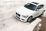 Салон, обитый дорогой красной кожей, великолепно сочетается с снежно-белым цветом кузова. Садясь в водительское кресло, сразу обращаешь внимание, как эргономично расположены все элементы управления в автомобиле начиная от множества регулировок сидения, которые позволяют комфортно усесться за рулем водителю с любым ростом и весом, заканчивая очень удобным джойстиком управления мультимедийной системой, расположенным между сиденьями, рядом с селектором АКПП. Вся информация выводится на широкоформатный экран, расположенный на центральной консоли над воздуховодами, который своей формой напоминает половинку от iPad. Мультифункциональный руль, на котором также красуется логотип «М», с лепестками переключения скоростей и толстым ободом идеально ложится в руки. Отменная шумоизоляция, настолько приглушает все внешние шумы, что, чтобы насладиться приятным рокотом двигателя, хочется открыть окна, несмотря на холодную погоду за бортом. Так как M135i относится к первой серии, здесь нет вставок из дорогого дерева и прочих элементов роскоши, присущих автомобилям классом выше, но, находясь внутри, принадлежности к младшему классу не замечаешь. Добротный мягкий пластик, фирменная панель приборов — всё это смотрится качественно, органично и стильно.