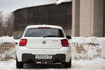 Если BMW первой серии — это самый дешевый «входной билет» в число владельцев автомобилей с пропеллером на эмблеме, то M135i — это самый доступный автомобиль немецкого автогиганта с заветным шильдиком «M» на багажнике. Правда, полноценной «эмкой» её назвать всё-таки нельзя — это один из первых автомобилей линейки M Performance, который должен заполнить нишу между обычными ВMW и их спортивными модификациями. Внешне «горячий» хетчбэк BMW отличается от обычных представителей первой серии новым дизайном передней части. Массивный бампер с большими воздухозаборниками, выполняющими задачу по охлаждению двигателя, и 18-дюймовые колеса с оригинальными легкосплавными дисками придают автомобилю довольно агрессивный и солидный вид.