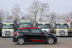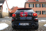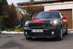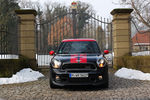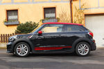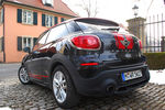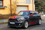 Тюнингованная силами John Cooper Works пестрая трехдверка сразу притягивает к себе внимание фирменным черно-красным окрасом кузова, агрессивным обвесом и заниженной подвеской, а 18-дюймовые колёсные диски и изгиб верхней линии кузова придают автомобилю еще более спортивный вид. Интересно, что впервые у MINI задние фонари расположены по горизонтали, как бы подчеркивая ширину задней части. Хотя компания и позиционирует автомобиль как кроссовер, но честно говоря, похож MINI больше на хетчбэк.