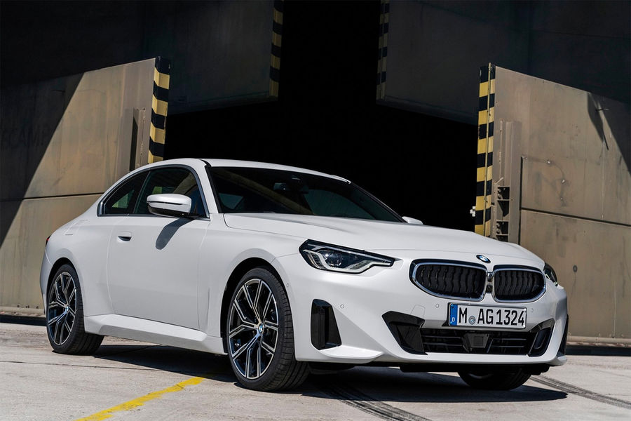 Новое поколение купе BMW 2-Series заметно увеличилось в габаритах. Автомобиль стал на 10 сантиметров длиннее и почти на 6,5 сантиметров шире предшественника. Фирменные «ноздри» решетки радиатора подобно жалюзи могут закрываться для снижения аэродинамического сопротивления. Это происходит, когда система охлаждения двигателя не нуждается в дополнительном притоке воздуха.