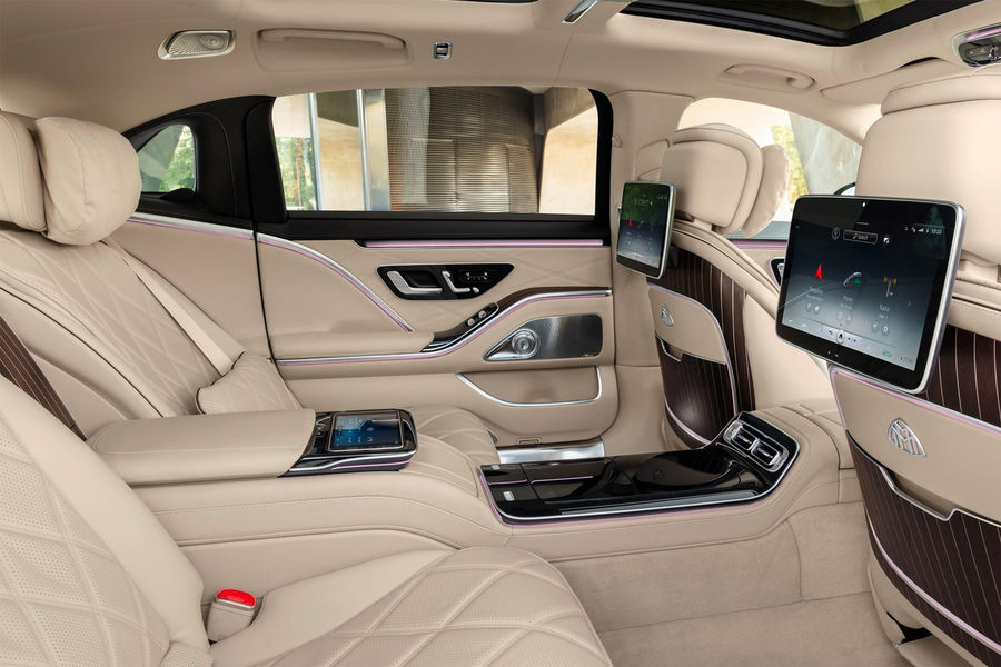 Mercedes-BenzПредыдущее поколение представительского Maybach продавалось в том числе и с обычным задним диваном для троих пассажиров. Теперь он исключительно четырехместный: сзади установлены раздельные кресла с массажем, всевозможными электроприводами и даже обогревом для шеи и плеч пассажиров. Между сидениями расположен внушительный бокс с холодильником и баром с бокалами для шампанского. Пассажиры могут на свой вкус выбирать цвет подсветки, ее яркость и направленность светового пучка. Всего в салоне нового автомобиля установлено более 250 светодиодных источников света