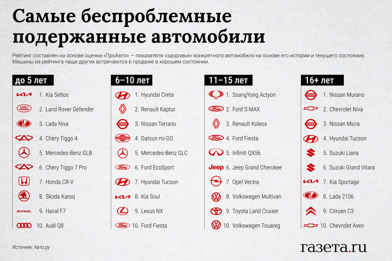 При этом шансы нарваться на проблемную машину моложе пяти лет минимальны, утверждают авторы отчета: от 99 до 100% предложений из первой десятки в этой возрастной категории имеют высокий рейтинг.