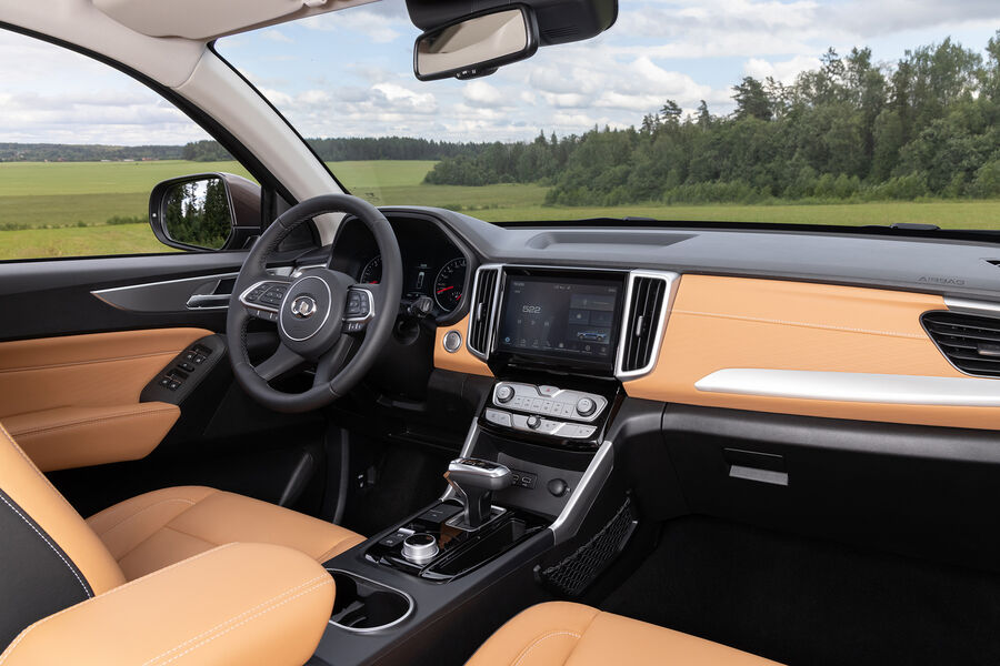 В пути водитель может жонглировать переключением автоматической коробки скоростей с помощью подрулевых переключателей. На ровной дороге китайский рамник, на удивление, очень устойчив на скорости, он не рыскает по прямой, руль держит выбранное направление. У пикапов, пока их не загрузили, традиционно самая «тяжелая» ось передняя, из-за этого все они склонны к заносу в крутом повороте.