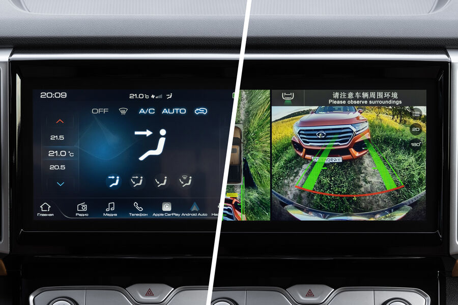 На парковке сложнее из-за того, что у Poer высокая подоконная линия, да и сам он очень высокий, но в дорогой комплектации эта проблема решается камерами кругового обзора. У них довольно четкая детализация даже в темное время суток, поэтому припарковаться вплотную к бордюру или развернуться в ограниченном пространстве не составляет труда.