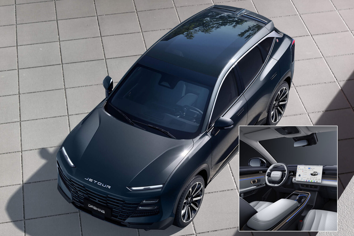 В случае X90 Plus — это технически унифицированный с Chery Tiggo 7 Pro «паркетник», его габариты отличаются незначительно. В салоне установлен большой планшет как у электрокаров Tesla, с его помощью производится управление множеством функций автомобиля, включая сдвижение панорамной крыши.