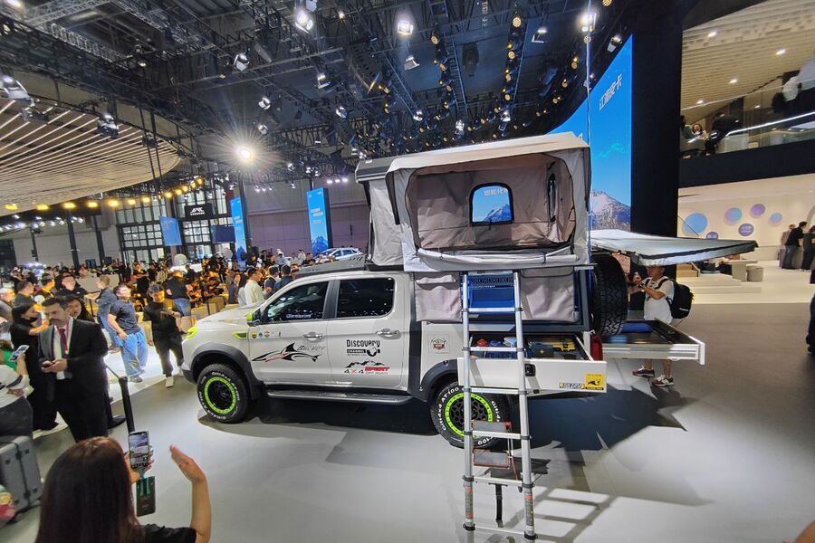 Компания JAC на Шанхайском автосалоне продемонстрировала возможности пикапа T8. В кузове автомобиля китайцы смонтировали туристическую надстройку с палаткой и различными аксессуарами для кемпинга. А в самом центре стенда компании — концептуальный минивэн JAC Refine, который наиболее ярко демонстрирует новое направление дизайна автокомпании.