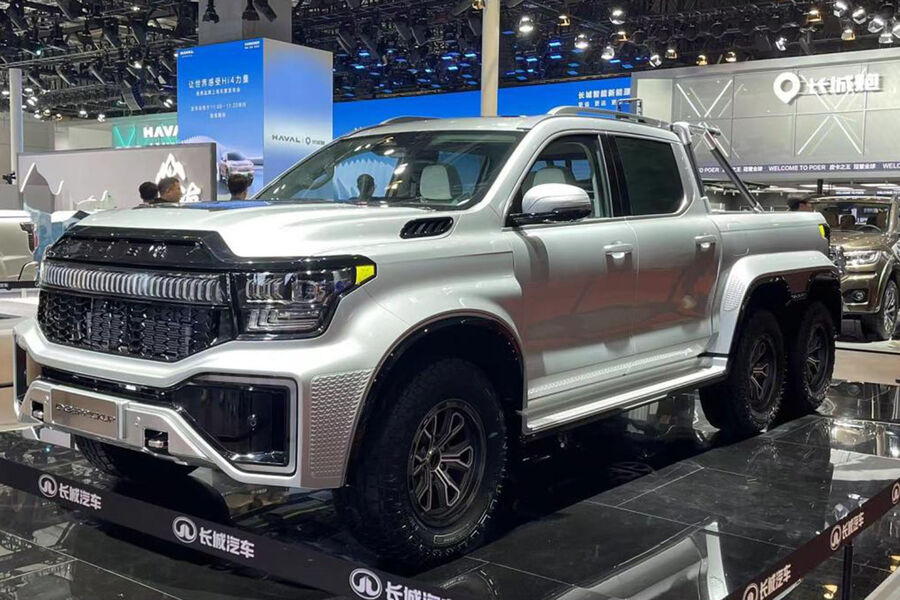 Вишенка на торте — монструозный GWM Poer Caberpickup 6X6. Это гибридный трёхосный пикап, в него установлен 3-литровый мотор V6 (360 л.с.) и электродвигатель неизвестной мощности. Разгоняется до классической «сотни» эта машина за 7,5 секунды.