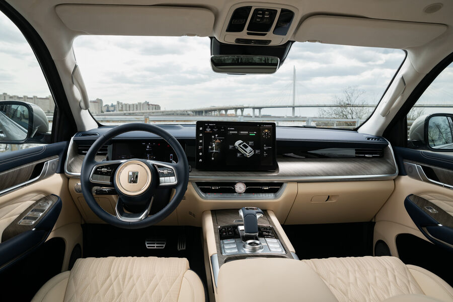 Кстати, если кресла Tank 500 заставляют вспомнить об Infiniti, то дизайн рулевого колеса отсылает к продукции Porsche. И все равно интерьер Tank 500 смотрится солидно и примененные в нем материалы вызывают ощущение качества.