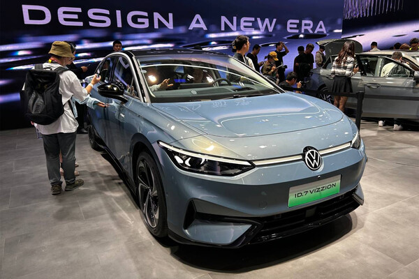 Стенд Volkswagen на автосалоне в Пекине украшает лифтбек Volkswagen ID.7 Vizzion. Он преподносится как электрический преемник седана Volkswagen Passat.