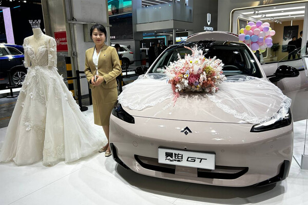 GAC представил электромобиль Aion Hyper GT для молодоженов в молочном цвете. Идет ли свадебное платье в комплекте — не уточняется. Зато в багажник положили большого медведя и разноцветные шарики.