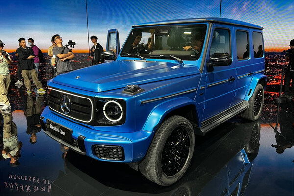 Одна из самых ожидаемых международных новинок автосалона — электрический Mercedes-Benz G-Class. Модель оснащена четырехмоторной трансмиссией — по одному двигателю на каждое колесо. Суммарная отдача системы составляет 587 л.с. С места до 100 км/ч новинка разгоняется за 4,7 с, максимальная скорость ограничена на отметке 180 км/ч. Визуально электромобиль отличается от классической версии G-Class только подсвечивающейся панелью вместо решетки радиатора и квадратным боксом на дверце багажника.