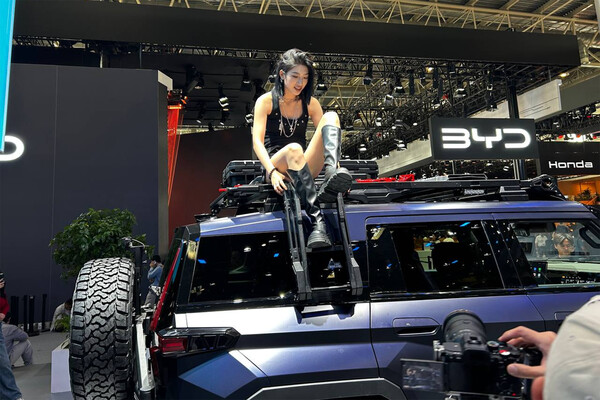 Вот так на Пекинском автосалоне работают зарубежные журналисты. Им удалось продемонстрировать хорошую растяжку.