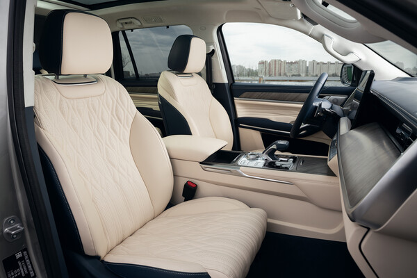 По части удобства и презентабельности салона «пятисотый» Urban ничем не проигрывает Toyota Land Cruiser 300. Внутри очень просторно, все выглядит дорого, в машине удобно как спереди, так и сзади, климатическая система поддерживает комфортную температуру. У передних кресел есть обогрев и вентиляция. К слову, электрические обогревы есть у рулевого колеса и у лобового стекла.