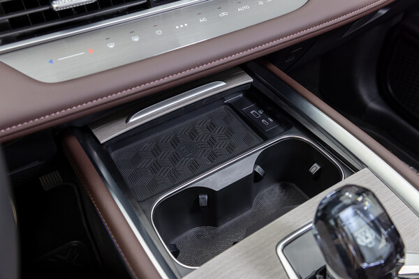 Среди улучшений также можно отметить наличие беспроводной зарядки для гаджетов, два USB-разъема спереди, включая один USB-C, а также более удобные подстаканники. В темное время суток интерьер обновленной «семерки» выглядит красиво: новая атмосферная подсветка заметно преображает салон.