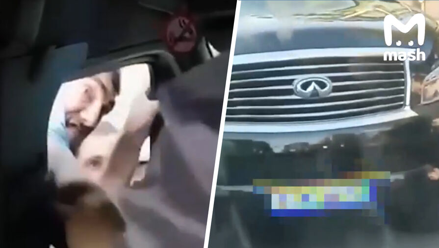По данным Mash, мужчины на автомобиле Infiniti решили, что свадебный микроавтобус их подрезал.