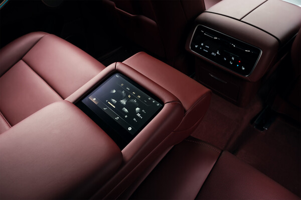 На втором ряду оказалось настолько просторно, что можно закинуть ногу на ногу. При этом сиденья отформованы под двоих пассажиров. Раздельные спинки сидений регулируются по наклону — с кнопок или с сенсорного пульта в подлокотнике. Среди других разделов тачскрина — подогрев, вентиляция и массаж сидений, настройки аудио.