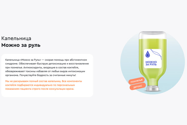 Капельница снимает все симптомы абстинентного синдрома, и после нее действительно можно садиться за руль», — рассказали в Refresh Clinic.