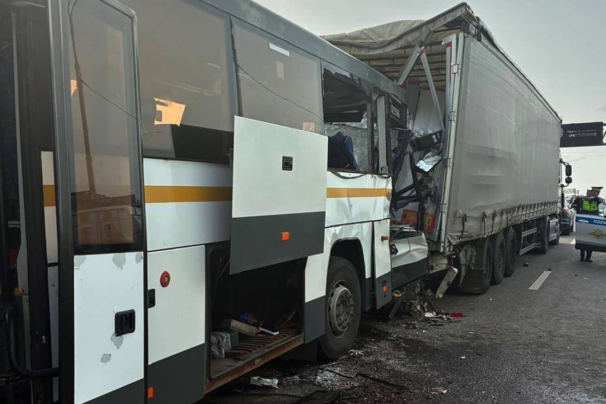 В Подмосковье автобус въехал в фуру, 14 человек получили травмы