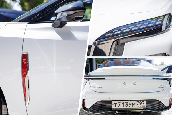 Как положено премиуму, Hongqi предлагает для своих машин двухцветные варианты окраса. В черно-белом исполнении дизайнерам марки удалось реализовать эффект парящей крыши у лифтбэка — это, когда визуально она, как будто, не касается кузова. Выглядит дорого и стильно. Пожалуй, владелец этой машины будет оборачиваться, чтобы полюбоваться ей на парковке.