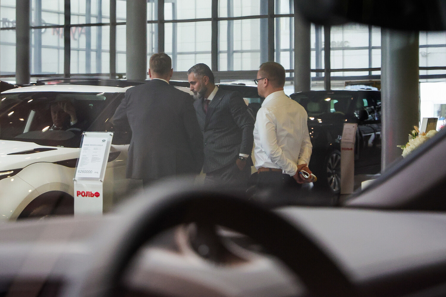 Покупатели смотрят машину в одном из автосалонов Москвы в 2025 году