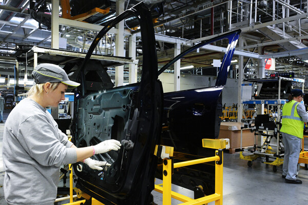Линия сборки автомобилей из китайских комплектующих на заводе ПСМА в Калуге