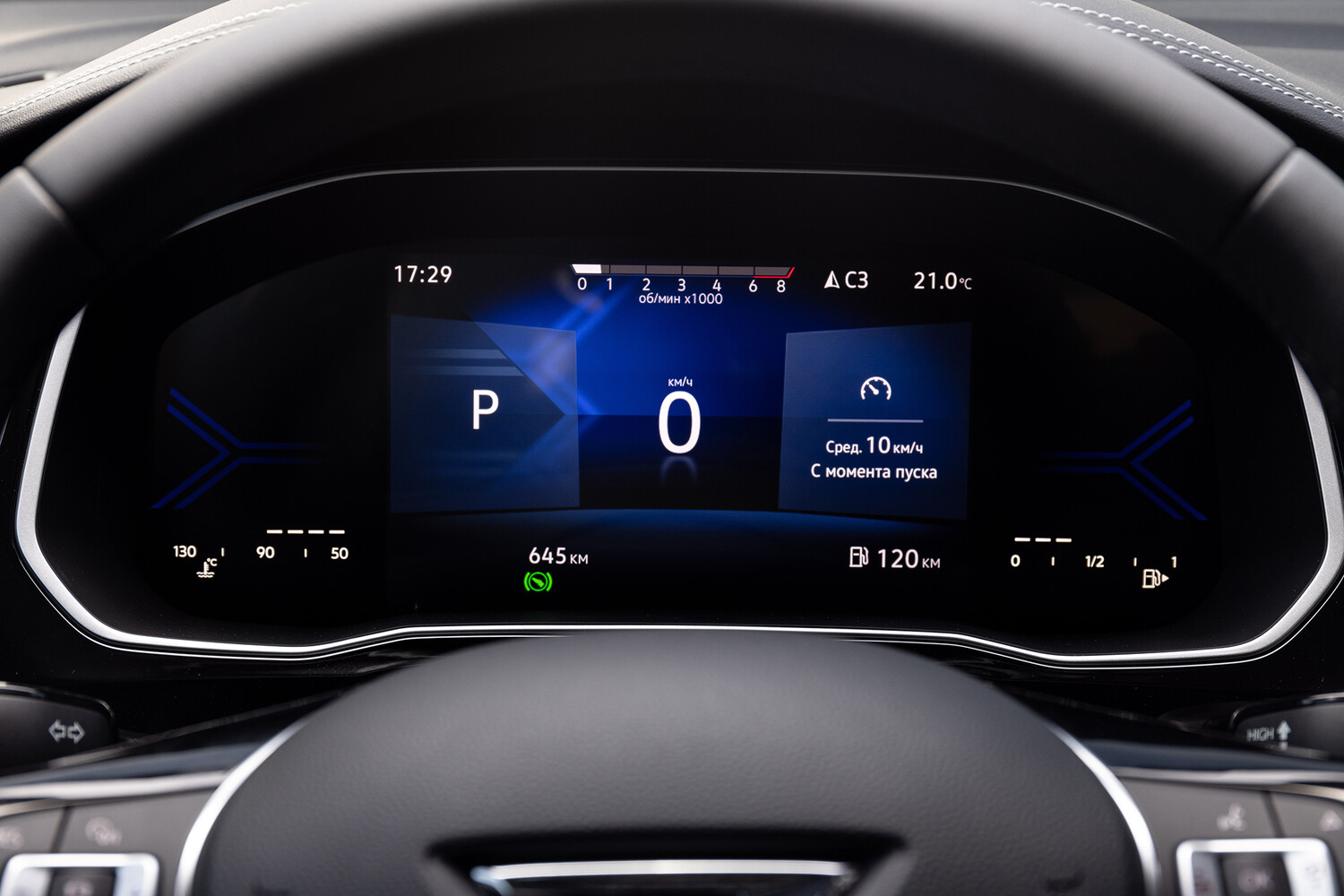 За рулем первые пять минут у вас будет дежавю, что вы снова очутились в родном Volkswagen образца 2020-го. Архитектура передней панели, форма трехспицевого руля, расположение органов управления на центральном тоннеле — все это буквально списано с моделей концерна. Правая рука сама ложится на фирменный ваговский рычаг классического «автомата», взгляд сразу находит понятные шкалы приборов (в базе они обычные, а не цифровые).