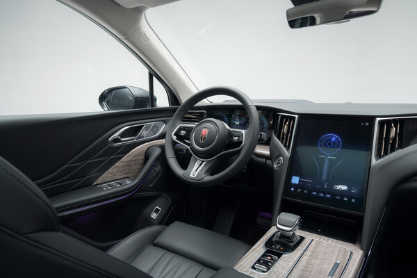 Внутри HS7 демонстрирует свои сильные стороны и компромиссы. Пространства в салоне более чем достаточно. Водительское место — что у кормчего: сверху смотришь на дорогу как с высоты мостика, в руки удобно ложится хваткий обод руля без модных подгибов и с перфорированной обшивкой, скины виртуальной приборки без изысков, но информативны. Пластик на нижней части грубоват для такого сегмента. Словно инженеры щедро потратились на «флаг», но сэкономили на «древке».