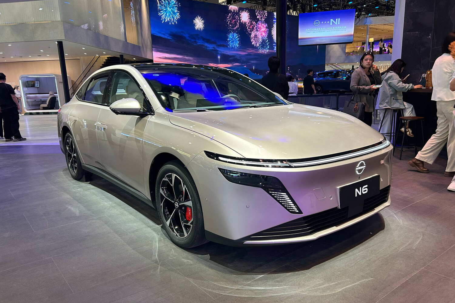 Nissan N6 на Пекинском автосалоне 2026 — публичная экспозиция после декабрьской премьеры. Новый PHEV-седан (подключаемый гибрид) от Dongfeng и Nissan длиной 4,8 метра. Запас хода только на электротяге — 180 км по циклу CLTC. Батарея LFP (21,1 кВт·ч). Силовая установка: 1.5 л (75 кВт) + электромотор (155 кВт). В салоне: электрорегулировки кресел, вентиляция, массаж, раздельный климат-контроль. Старт продаж — после декабрьской презентации, цены от 106 900 юаней (1,2 млн рублей).