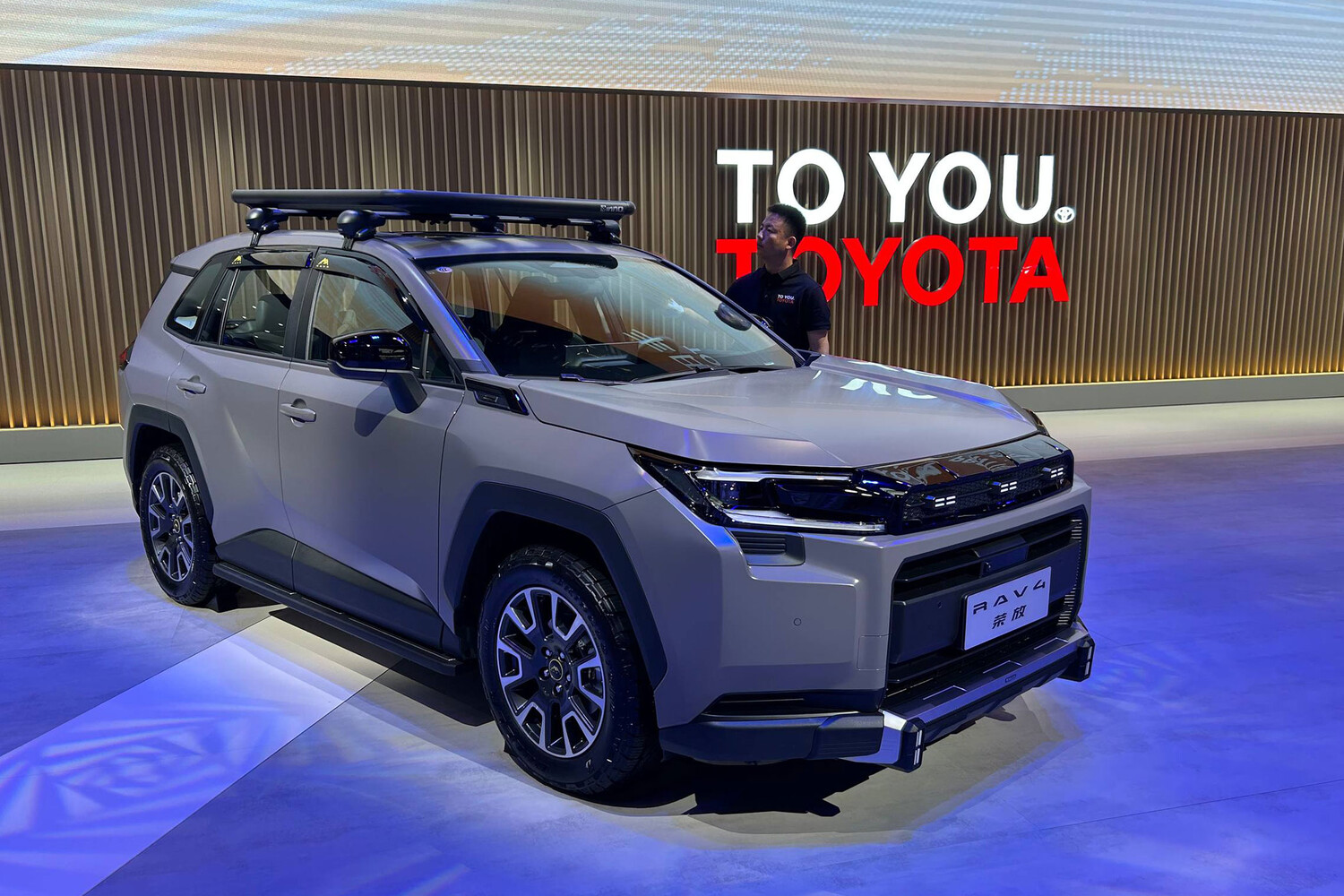 Автомобили Toyota в целом и кроссовер RAV4 в частности — бестселлеры параллельного импорта на российском рынке. На Пекинском автосалоне на стенде японского бренда присутствует RAV4 актуального поколения, который дебютировал в Гуанчжоу прошлой осенью. Характерные штрихи внешности — угловатый дизайн и С-образная передняя оптика.