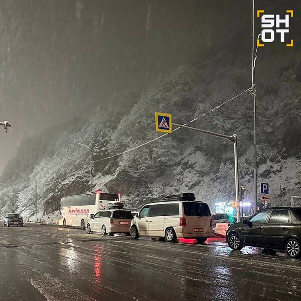 На границе России и Грузии из-за снежного коллапса застряли десятки машин