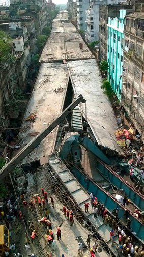В Индии в ходе строительства обрушилась транспортная эстакада, передает Reuters.