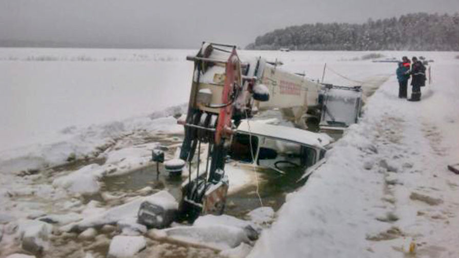 «Происшествие случилось вечером в понедельник при очередной попытке организовать эвакуацию затонувших бензовоза и автокрана из-подо льда», — сказали в МЧС.