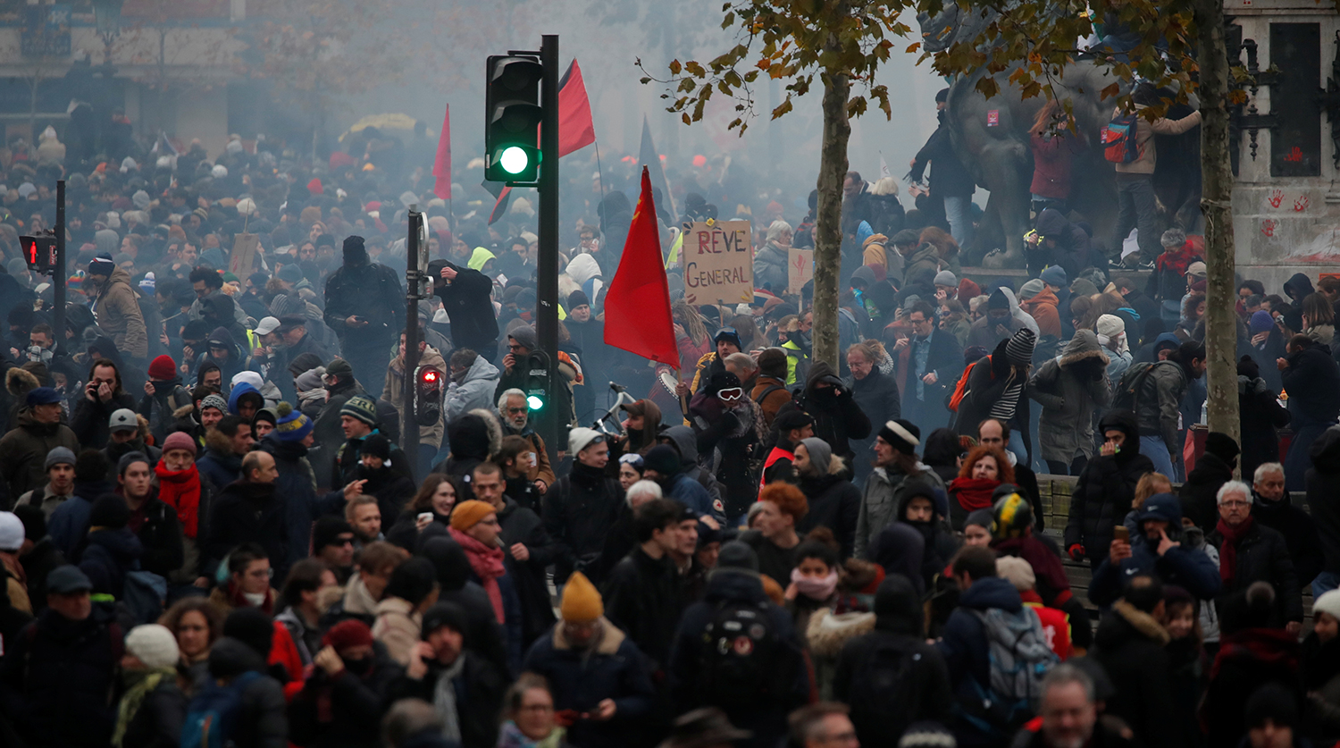 Забастовки начались в Париже 5 декабря. Различные категории людей протестуют против пенсионной реформы, в том числе, работники транспортных компаний.