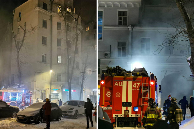 В публикации отмечается, что возгорание началось в здании по адресу улица Мясницкая до 24/7, строение 3.
